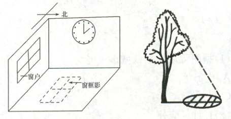 (2025·揭阳模拟)读我国$33^{\circ}N$某地春分日房屋内的光照情况及室外一株大树影长示意图,回答1、2题。(可能用到的函数值:$\tan33^{\circ}=0.66$,$\tan45^{\circ}=1$,$\tan57^{\circ}=1.54$)