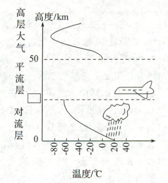[回归教材]读必修第一册教材P31图2.5“大气的垂直分层示意”,在下图中填出对流层平均高度,并补绘平流层气温变化曲线。