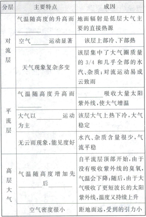 (2)递减 对流 上升 臭氧 平流 下降 上升