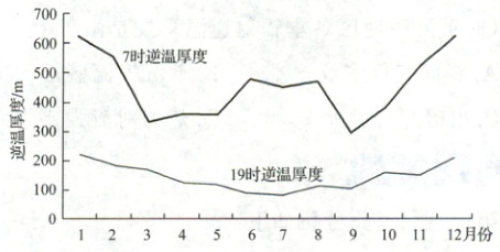(2025·东莞模拟)下图为研究小组对我国青藏高原某河谷城市进行逆温测定的结果。读图,完成4、5题。