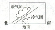 画出倒暖锋的剖面示意图(画出锋面、云雨,标出冷暖气团及气流运动方向)。(4 分)