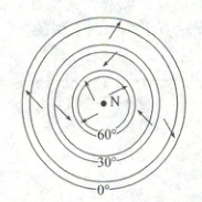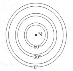 (2)在下图中画一幅以北极为中心的“北半球风带”投影图。