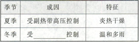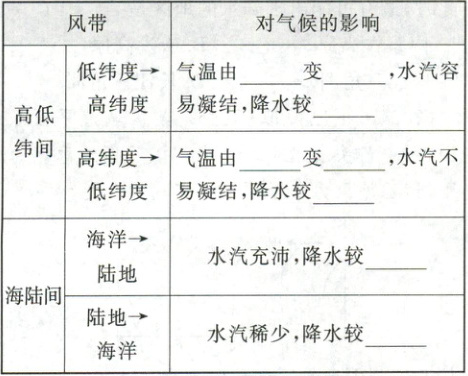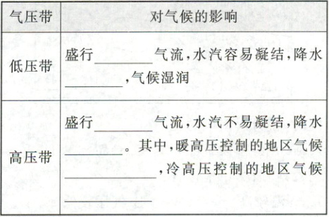 (1)对气候的影响:气压带和风带的季节移动→同一地区不同季节受到气压带和风带的交替控制→气候特点呈现显著的