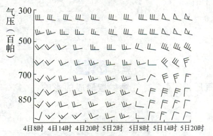(2024·青岛模拟)水汽输送特征会深刻影响降水过程。2022年6月4日8时—5日20时安徽省芜湖市区出现一次短时强降雨。下图示意芜湖市气象站上空水平风演变。据此完成3~5题。