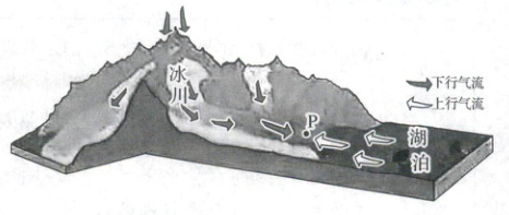 (1)若暖季上、下行气流常在图中 P 地附近交汇,则该地(
