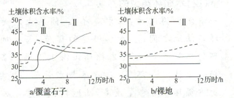 (1)据图 a 判断曲线Ⅰ是深度为 30 厘米的土壤体积含水率变化曲线,依据是曲线Ⅰ(