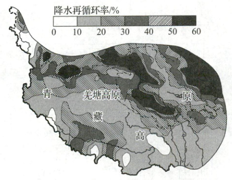 3. 青藏高原不同区域降水再循环率的差异主要取决于(