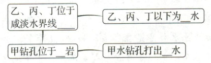(2) 图中所示的四个钻孔中可打出淡水的是(