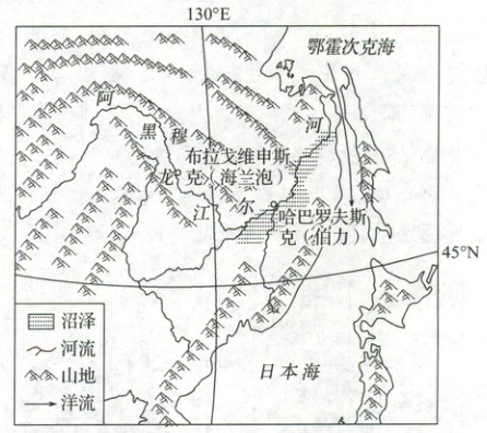 (1)与中游河段相比,简述阿穆尔河下游河段突出的水文特征。(6分)