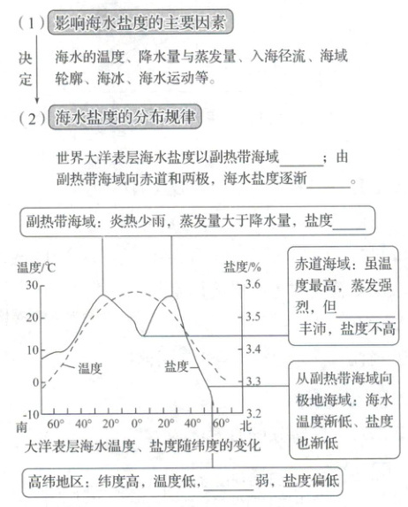 (3) 海水的盐度对人类生产、生活的影响:利用海水晒盐、