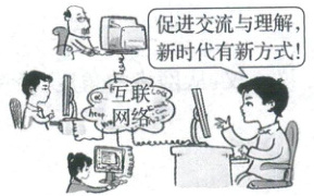 思考:这幅漫画告诉我们:网络打破了传统人际交往的时空限制,使人际交往变得更加