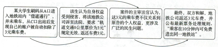 材料二 一则规则调整的背后,源于某大学生的一次为 3 元而维权的诉讼。