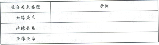2. 分一分:从社会关系建立的基础这一角度,请将漫画中各种关系填入如下表格: