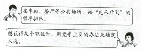 5.A 本题考查维护社会的公平正义。在车站、餐厅按“先来后到”排队以及竞争上岗,都体现了对公平原则的遵循,强调了机会均等、规则公平等公平理念,故A符合题意;这与爱岗敬业、服务社会、珍视自由的关系不直接,主要体现的是坚守公平,故B、C、D不符合题意。