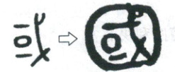 情境一 “国”字原作“或”,字形像以“戈”守卫“口”。后来在“或”字的周围加方框表示疆域,构成“國(国)”字。