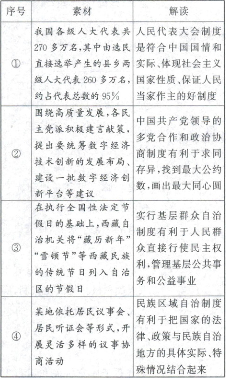 6. [素材解读]某班在“发挥制度优势保障人民当家作主”研究性学习中搜集到以下素材。