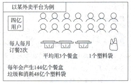 A 本题考查正确认识生态文明建设。图片内容警示我们要倡导节能、环保、低碳的生产生活方式,A说法正确;题文中没有体现节约粮食的相关知识,B说法与题意不符;外卖平台方便了消费者,所以不能杜绝外卖,取缔外卖平台,C说法错误;要完善相应的法律法规,做到罚管兼施,而不能以罚代管,D说法错误。