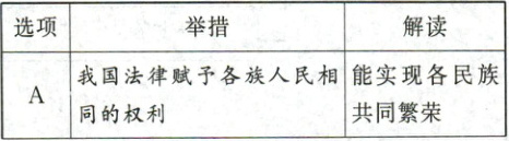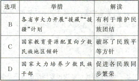 4.下列举措与我国处理民族关系的方针解读对应正确的一项是 0 (