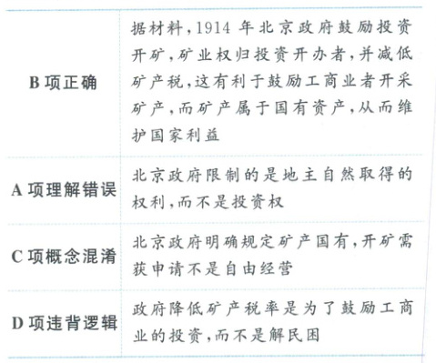 1914年3月,北京政府工商部颁布《矿业条例》,明确规定矿产国有,但鼓励中外业者投资开矿,矿业权之获得不以地主自然取得而以申请为先,同时大幅减低矿产物,取消原有的将部分赢利上交给政府的规定。这表明政府意在( )