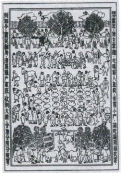 例299 [河北2024·10]下图所示年画描绘了新民主主义革命时期的某一历史场景,并题有对联:“想当年,地主掌权,吃喝穷人血肉,苦害小户,缺吃缺用缺衣裳;到如今,农民翻身,清算粮户家底,砍倒大树,分地分房分财宝。”