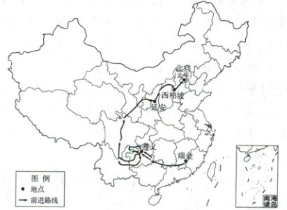 材料 中国共产党领导新民主主义革命走向胜利的征途中,在下图所示各地留下了光辉的足迹。