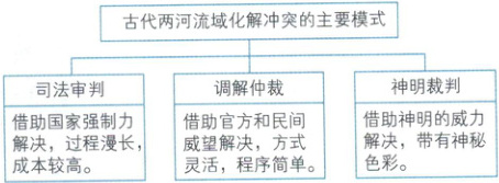 【解析】本题考查古代文明的多元特点。据图可知,古代两河流域化解冲突的主要模式有司法审判、调解仲裁、神明裁判,说明纠纷解决方式多元,故选D项;材料重在展示古代两河流域化解冲突的几种模式,无法体现居民的法律意识浓厚,排除A项;材料涉及神明裁判化解冲突的方式,但没有涉及君主的权力来源,排除B项;材料强调的是化解冲突的方式,体现不出君主专制的特征显著,排除C项。