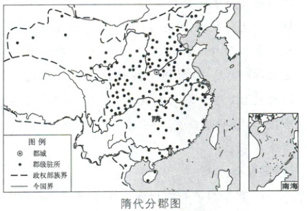 【答案】示例:隋代政区改革受历史、地理和政治发展的影响。从历史角度看,隋代实行郡县制,既继承了秦朝在全国推行郡县制的做法,又学习汉代设立监察地方的刺史制度,从而有利于加强对地方的管理;从地理角度看,隋代的郡分布主要集中在黄河流域和长江流域,沿途土地肥沃、灌溉便利,气候和自然条件适宜发展农耕,小农经济发达;从政治角度看,隋文帝废除诸郡,隋炀帝继位后,增加州的设置,随后改州为郡,设置司隶刺史,加强对地方的控制,平定吐谷浑后,在其属地设立四郡,加强对其控制,都体现了政治统治的需要。