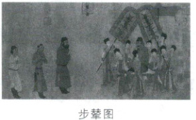 例99 [全国高考]下图为唐代著名画家阎立本的《步辇图》,描绘了唐太宗李世民接见吐蕃使臣的情景。该作品体现了(