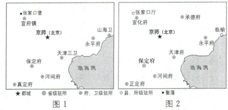 例138 [河北2024·6]图1、图2为不同朝代的中国北方部分驻所分布示意图。