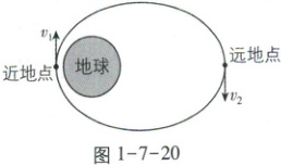 例 159 [江苏高考]“东方红一号”是我国第一颗人造地球卫星,该卫星至今仍沿椭圆轨道绕地球运动.如图 1 - 7 - 20 所示,设卫星在近地点、远地点的速度分别为 $v_{1}$、$v_{2}$,近地点到地心的距离为 $r$,地球质量为 $M$,引力常量为 $G$,则(
