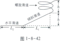 [辽宁新高考]冰滑梯是东北地区体验冰雪运动乐趣的设施之一. 某冰滑梯的示意图如图 1 - 8 - 42 所示, 螺旋滑道的摩擦可忽略; 倾斜滑道和水平滑道与同一滑板间的动摩擦因数 $ \mu $ 相同, 因滑板不同 $ \mu $ 满足 $ \mu_{0} \leq \mu \leq 1.2\mu_{0} $. 在设计滑梯时, 要确保所有游客在倾斜滑道上均减速下滑, 且滑行结束时停在水平滑道上, 以下 $ L_{1} $、$ L_{2} $ 的组合符合设计要求的是 ( )