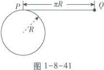 [河北新高考]一半径为 $ R $ 的圆柱体水平固定, 横截面如图 1 - 8 - 41 所示. 长度为 $ \pi R $、不可伸长的轻细绳, 一端固定在圆柱体最高点 $ P $ 处, 另一端系一个小球. 小球位于 $ P $ 点右侧同一水平高度的 $ Q $ 点时, 绳刚好拉直. 将小球从 $ Q $ 点由静止释放, 当与圆柱体未接触部分的细绳竖直时, 小球的速度大小为(重力加速度为 $ g $, 不计空气阻力) (