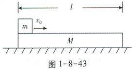 [全国乙2023·21]如图 1 - 8 - 43, 一质量为 $ M $、长为 $ l $ 的木板静止在光滑水平桌面上, 另一质量为 $ m $ 的小物块(可视为质点)从木板上的左端以速度 $ v_{0} $ 开始运动. 已知物块与木板间的滑动摩擦力大小为 $ f $, 当物块从木板右端离开时 (