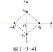 如图1-9-41,四个电荷量均为$ q(q > 0) $的点电荷分别放置于菱形的四个顶点,其坐标分别为$ (4l, 0) $、$ (-4l, 0) $、$ (0, y_{0}) 和 (0, -y_{0}) $,其中x轴上的两个点电荷位置固定,y轴上的两个点电荷可沿y轴对称移动$ (y_{0} \neq 0) $。下列说法正确的是(
