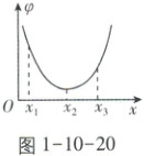 例263 以静电场中某点为原点建立一维坐标系,电势$\varphi$随x变化的规律如图1-10-20所示,图像关于$x = x_{2}$对称,$2x_{2}>x_{1}+x_{3}$,由图1-10-20可知(