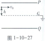 例269 [全国高考] 如图1-10-27,两金属板P、Q水平放置,间距为d。两金属板正中间有一水平放置的金属网G,P、Q、G的尺寸相同。G接地,P、Q的电势均为$\varphi(\varphi > 0)$。质量为m、电荷量为$q(q > 0)$的粒子自G的左端上方距离G为h的位置,以速度$v_0$平行于纸面水平射入电场,重力忽略不计。