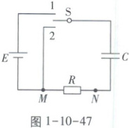 例285 [甘肃2024·7]一平行板电容器充放电电路如图1-10-47所示. 开关$S$接1,电源$E给电容器C$充电;开关$S$接2,电容器$C对电阻R$放电. 下列说法正确的是(