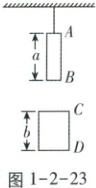 例22 如图1-2-23所示,悬挂的直杆AB长为a,在B端下方距离为h处,有一长为b的无底圆筒CD,已知重力加速度为g,若将悬线剪断,求: