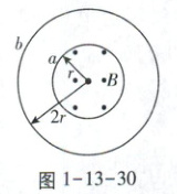 如图1-13-30所示,两个单匝线圈$a$、$b的半径分别为r和2r$。圆形匀强磁场$B的边缘恰好与a$线圈重合,则穿过$a$、$b$两线圈的磁通量之比为(