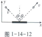 例342 [北京高考]动量定理可以表示为$\Delta p = F\Delta t$,其中动量$p和力F$都是矢量. 在运用动量定理处理二维问题时,可以在相互垂直的$x$轴、$y$轴上分别研究. 例如,质量为$m$的小球斜射到木板上,入射的角度是$\theta$,碰撞后弹出的角度也是$\theta$,碰撞前后的速度大小都是$v$,如图 1 - 14 - 12 所示. 碰撞过程中忽略小球所受重力.