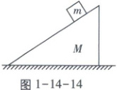 例347 如图1-14-14所示,物块m、斜劈M和水平支持面都是光滑的,控制m、M使其静止。撤去控制,m在斜劈上运动的过程中( )