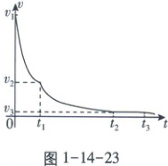 神舟十三号返回舱进入大气层一段时间后,逐一打开引导伞、减速伞、主伞,最后启动反冲装置,实现软着陆。某兴趣小组研究了减速伞打开后返回舱的运动情况,将其运动简化为竖直方向的直线运动,其 $v - t$ 图像如图 1 - 14 - 23 所示。设该过程中,重力加速度不变,返回舱质量不变,下列说法正确的是( )