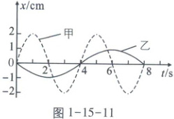 例 374 如图 1 - 15 - 11 所示,虚线和实线分别为甲、乙两个弹簧振子做简谐运动的图像. 已知甲、乙两个振子质量相等,则 ( )