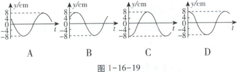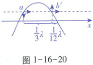 【解析】质点a、b平衡位置之间的距离为$\vert -\frac{40}{3}-120\vert cm= \frac{4}{3}\lambda$,观察b点左边平衡位置与b点的平衡位置相距$\lambda的点b'$,$b'$点与b点振动形式一致,画出a点和$b'$点在计时时刻的位置关系如图1-16-20所示,根据波形图判断出a处质点此时位移为4cm,向y轴负方向运动,A正确.