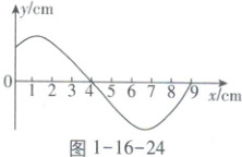 例403[重庆新高考]简谐横波沿$x轴正方向传播,$如图1-16-24为某时刻波形图.波源位于$x = 0处,其位移随时间变化的关系为y = \sin(2\pi t)\ cm$,$则 (