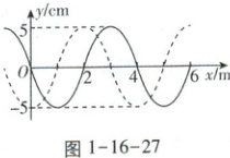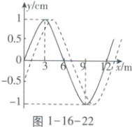 例401[湖北新高考]一列简谐横波沿$x$轴传播,在$t = 0时刻和t = 1\ s$时刻的波形分别如图1-16-22中实线和虚线所示.已知$x = 0处的质点在0\sim1\ s内运动的路程为4.5\ cm$.下列说法正确的是 ( )