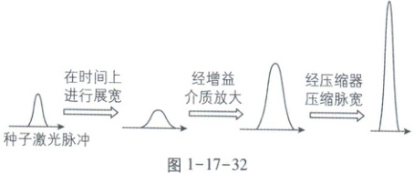 超强超短激光经聚焦后最高光强可以达到$10^{22} \sim 10^{23} W/cm^2$,是已知的最亮光源.已知太阳辐射的总功率约为$4 × 10^{26} W$.如图1-17-32所示,啁啾激光脉冲放大技术原理可以简化为,利用色散将脉冲时长为飞秒$(10^{-15} s)$级激光脉冲通过展宽器在时间上进行展宽;展宽后的脉冲经过激光增益介质放大,充分提取激光介质的储能;最后使用压缩器将脉冲宽度压缩至接近最初的脉宽值.根据以上信息,下列说法错误的是 (
