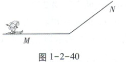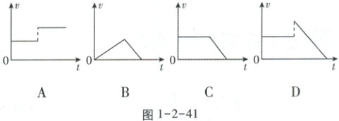 例42 [重庆2024·1]如图1-2-40所示,某滑雪爱好者经过$M$点后在水平雪道滑行,然后滑上平滑连接的倾斜雪道,当其达到$N点时速度为0$,若将其在水平雪道上的运动视为匀速直线运动,在倾斜雪道上的运动视为匀减速直线运动。则$M到N$的运动过程中,其速度大小$v随时间t$的变化图像可能是(