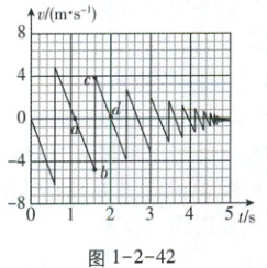例43 [河北2024·3]篮球比赛前,常通过观察篮球从一定高度由静止下落后的反弹情况判断篮球的弹性。某同学拍摄了该过程,并得出了篮球运动的$v - t$图像,如图1-2-42所示。图像中$a$、$b$、$c$、$d$四点中对应篮球位置最高的是(