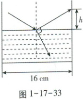 某同学设计了一种测量液体折射率的方案。容器过中心轴线的剖面图如图1-17-33所示,其宽度为16 cm,让单色光在此剖面内从空气入射到液体表面的中心。调整入射角,当反射光与折射光垂直时,测出竖直器壁上的反射光点与液体表面的距离 $ h $,就能得到液体的折射率 $ n $。忽略器壁厚度,由该方案可知( )